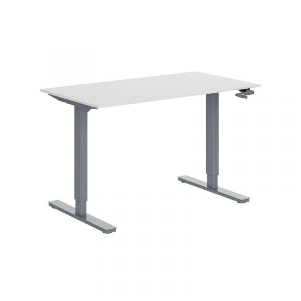 Höjdjusteringen sker genom att man för hand vevar bordet upp/ner till önskat läge. Det höj & sänkbara vevstativet lagerhålls i 3 olika färger, vit, svart och silvergrå. Stativet har en höj och sänkbar hastighet på 8 mm/varv. Slaglängden på ett stativ anger det höj & sänkbara avståndet. På vårt stativ med vev är slaglängden 450 mm. Formen på stativet är konstruerat med 2 delade rektangulära rör. Vårt vev stativ passar till dom flesta typer av bordsskivor, dom kan även justeras i bredd, vilket gör att Du kan vara extra flexibel när Du väljer bordsskiva.