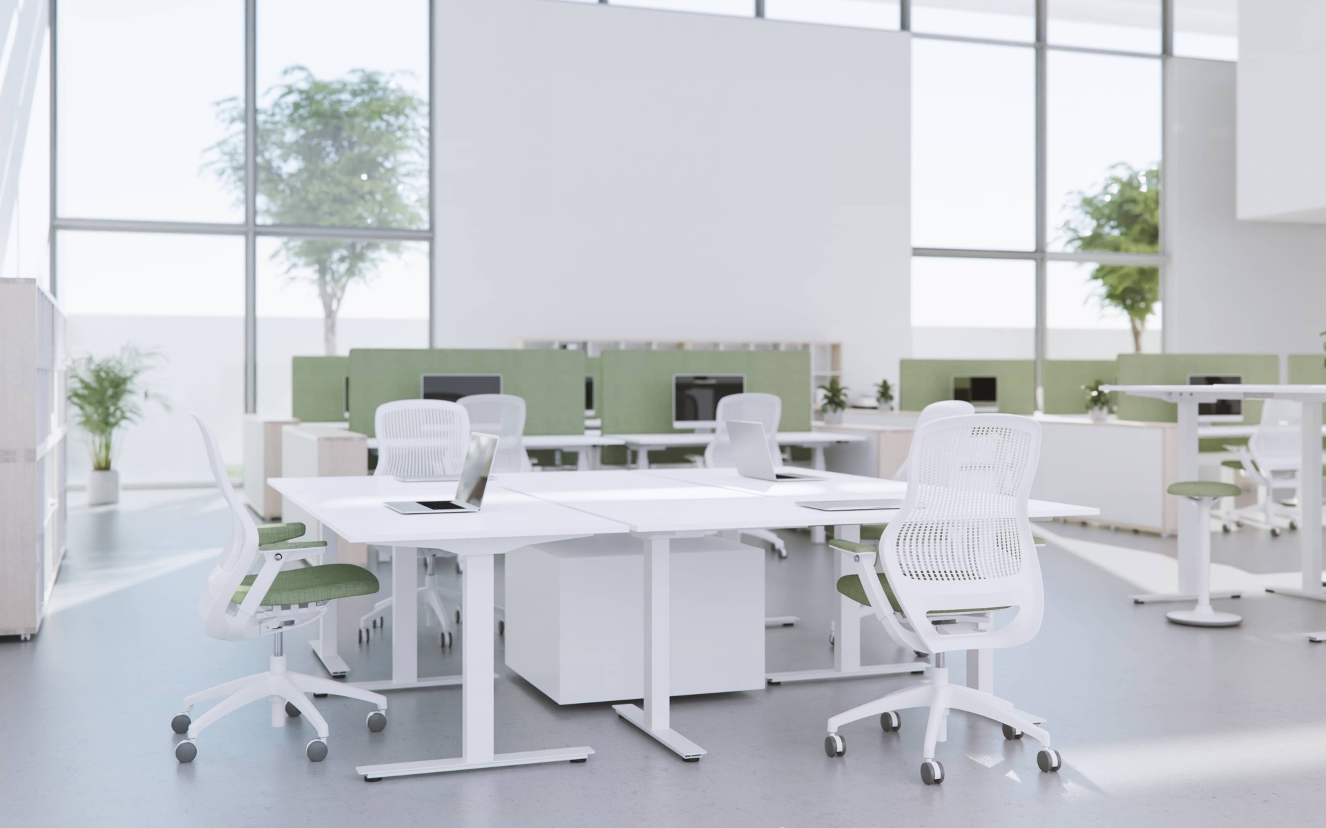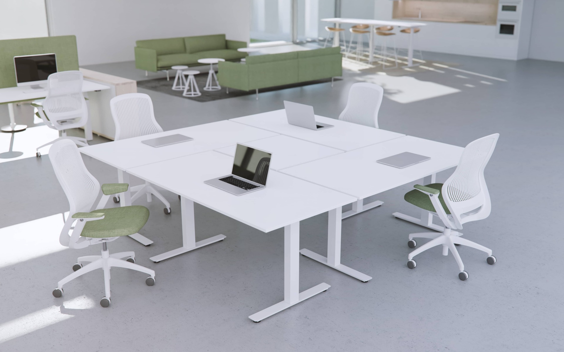 Stativet har en snygg design vilket gör att bordet passar in i alla olika typer av kontorslokaler. Bordsstativet har rektangulära ben som pulverlackerats i vit, svart eller silvergrå kulör. Stativet har en rek. max belastning på 120 kg vilket räcker gott och väl för dom flesta.